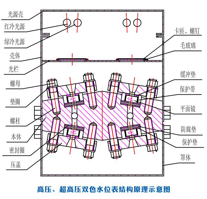 壓力容器以及管路水位的液位監(jiān)測,它是在總結(jié)我公司二十多年生產(chǎn)水位表的經(jīng)驗和國內(nèi)外雙色水位表優(yōu)點的基礎(chǔ)上研制而成的